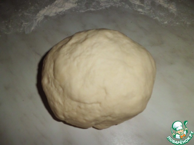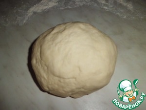 Формируем колобок, укрываем пленкой и отставляем на 15 минут. -