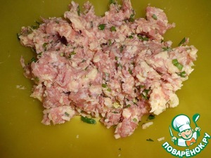 Фарш смешаем с зеленью (у меня зеленый лук и петрушка),