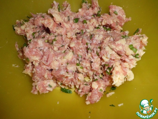 Фарш не должен быть жидким, просто слегка влажным.