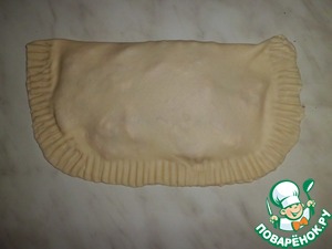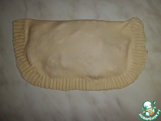 Края смазываем взбитым яйцом (водой) и очень тщательно "запечатываем"! Я не большой мастер делать это красиво, поэтому, простите, вышло так как умею)))