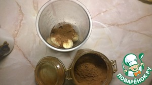 В блендер поломать банан, присыпать какао (без сахара), добавить немного молока (около 50 мл)