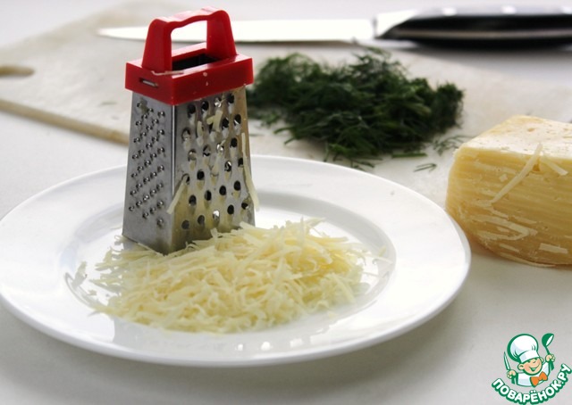 Натираем сыр и нарезаем зелень.