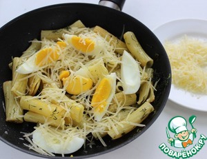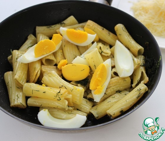 К макаронам осталось добавить нарубленные яйца