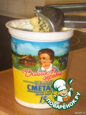 • Заправка:сметана+выд авленный чеснок+зелень+соль