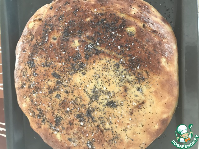 Сделать пальцами углубления, сбрызнуть оливковым маслом и посыпать маком.