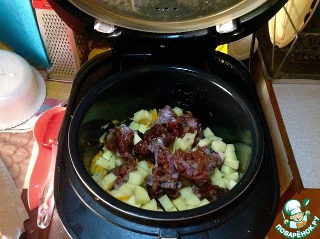 Выложить куски в чашу мультиварки, закрыть крышку и готовить до окончания программы