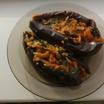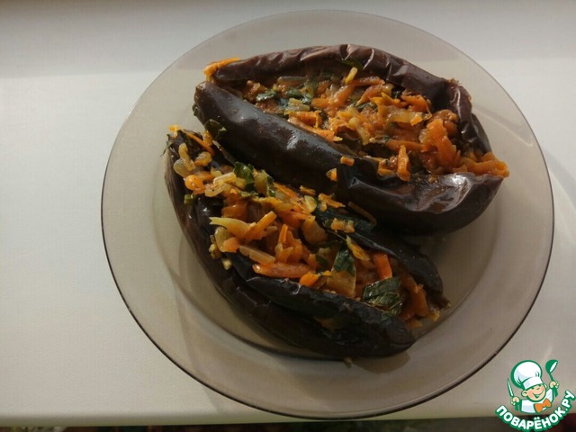 4. разрезав баклажан, наполняем начинкой, заливаем маслом.