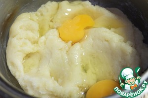 Продолжая мешать, добавляем 2 яйца. Мешаем до однородной массы. Затем 2 оставшихся яйца.