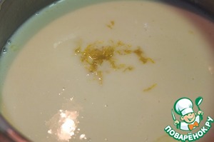 Крем сначала станет жидким, а затем начнет густеть. Добавляем лимонную цедру.