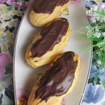 Наполняем эклеры кремом. Я делала это кондитерским шприцом с острой тонкой насадкой.
