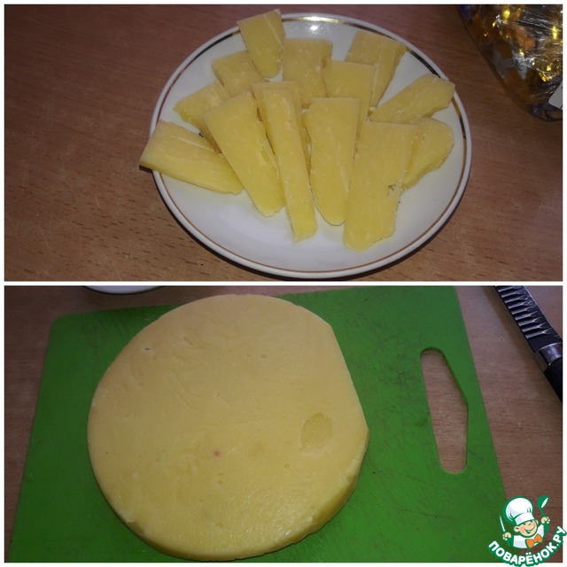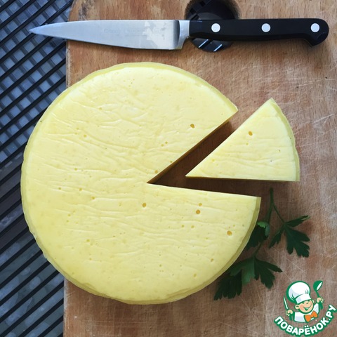 После того как в моей семье попробовали сыр в моем исполнении-для детей он стал заветным лакомством, а для мужа-любимейшим видом сыра (он любитель твердых сыров)! Отныне на магазинный сыр мои домочадцы смотрят брезгливо и с недоверием. Этот сыр я с гордостью подаю на стол на праздники, зная что уже через пять минут не останется ни кусочка и нужно будет подрезать еще! Этот сыр-моя гордость! Его оценили все-и домашние и гости! Поэтому смело делюсь своим рецептом!