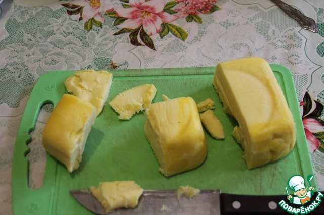 У меня масла много выделилось. Охлаждаю сыр. Чуть солоновато на первую пробу, но подожду
