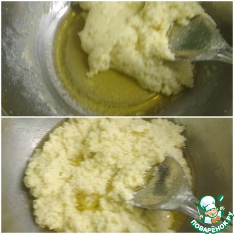 3. Масло не выделяется а наоборот вливается в творожную массу вместе с желтками и все это месится 10 минут. В процессе все это соединяется в одну тягучую массу постепенно а.творожные крупинки развариваются в одну тягучую гладкую массу.