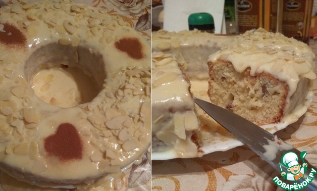 Готовый кекс достать из духовки и дать ему постоять 10 минут. Затем переложить кекс на решетку и дать ему полностью остыть. Думаю, что такой кекс можно с легкостью полить любой любимой глазурью, а можно просто присыпать сахарной пудрой.