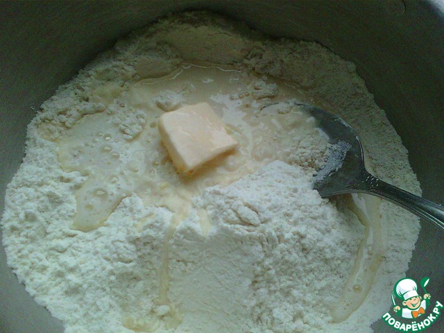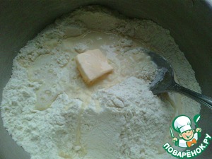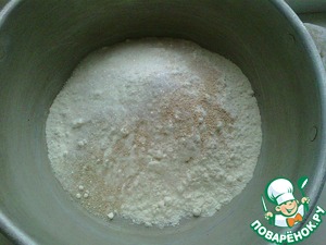 • Смешать все сухие ингредиенты: муку, соль, сахар, дрожжи.
