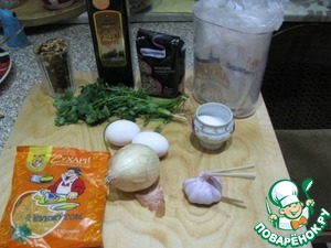 Орехи измельчим в блендере. Кинзу и чеснок измельчаем, все смешиваем. добавляем яйца, добавляем яйца, смешиваем с фаршем.