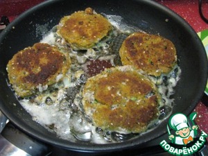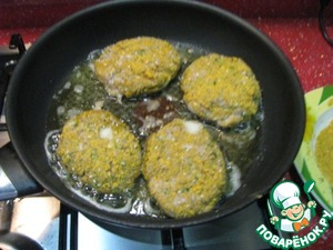 Добавим в тесто смесь из орехов и начинаем выпекать котлеты.