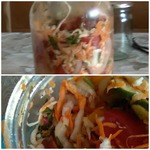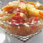 • Смешайте все овощи и заправьте смесью из 100 г сахара, 50 г соли, 200 мл уксуса. Оставьте на полчаса под крышкой.