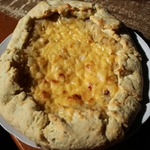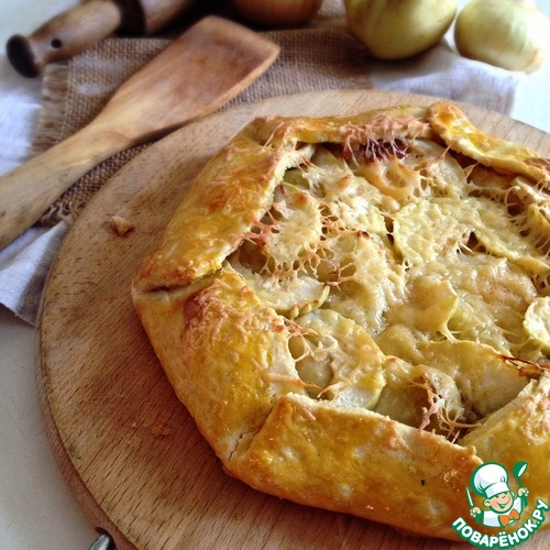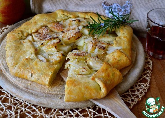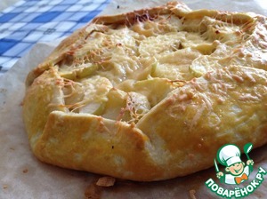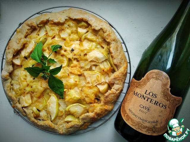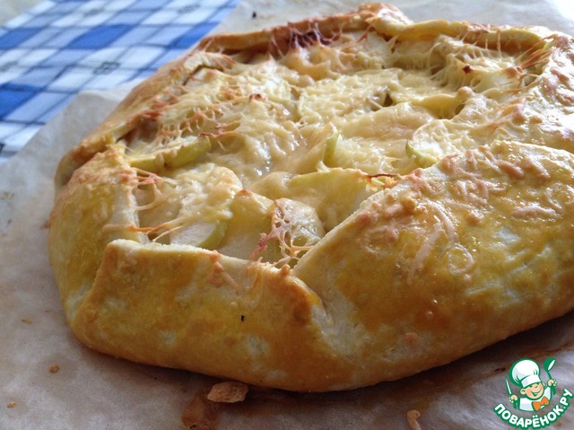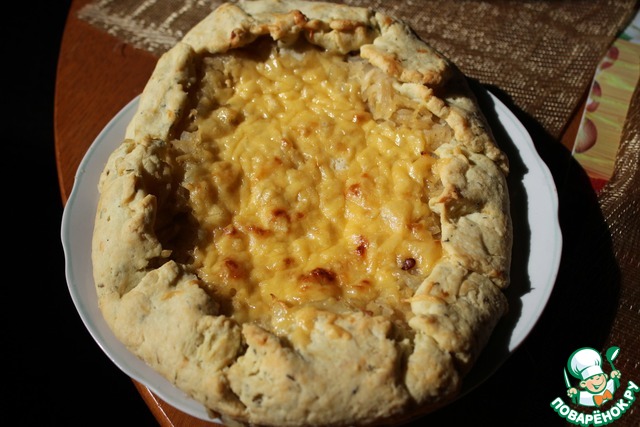Посыпать начинку сыром. Завернуть края теста к центру и сформировать галету. Смазать галету желтком и выпекать 25-30 минут при t-180 градусов до зарумянивания.