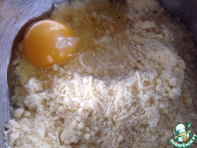 Добавить соль, сыр натертый на мелкую терку и розмарин. Вбить яйцо и замесить эластичное тесто. По необходимости, можете добавить муки!