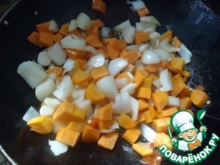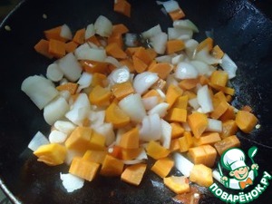 Смешиваем все ингредиенты: овощи, масло, соль, сахар, приправы и ставим тушиться на медленном огне до готовности.