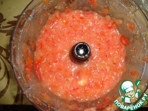 Помидоры измельчить либо с помощью блэндера, либо с помощью мясорубки.