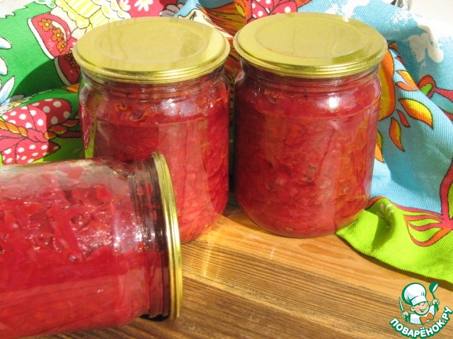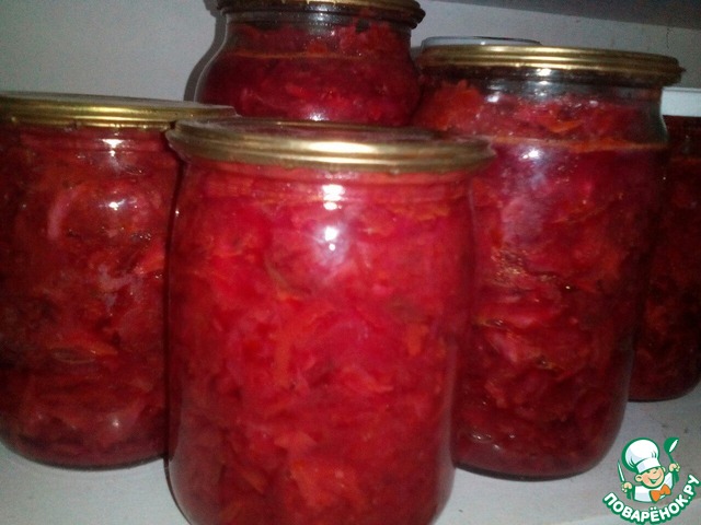 P.S. Из указанного количества ингредиентов получается около четырёх литров заготовки. Хранится борщ очень хорошо. Я храню в прихожей.