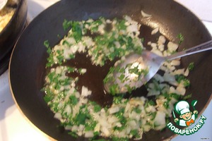 В лук добавить петрушку и все это опять обжарить в течении 30 секунд.