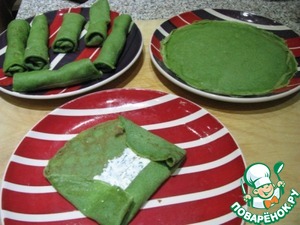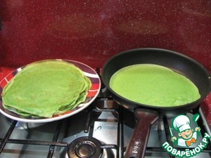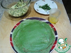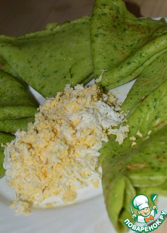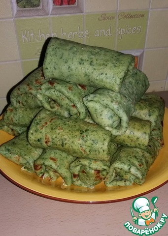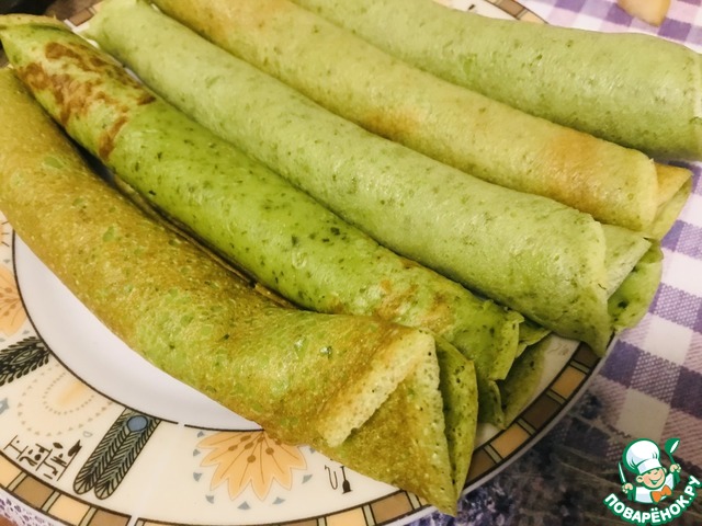 Рецепт «Зеленые блины с брынзой и чесноком»: