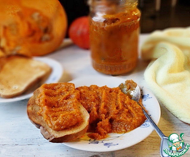 Этот рецепт родился после вопроса мужа, глядя на 16-ти киллограмовую красавицу он спросил "А из тыквы икру варят?". Я решила попробовать, результат нам очень понравился.