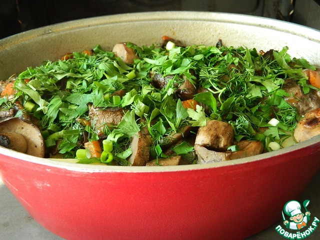 По истечении времени посыпаем наше блюдо нарезанной зеленью... -