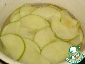 • Опустить дольки яблок в кипящий сахарный сироп и варить на среднем огне минут 5 до мягкости.