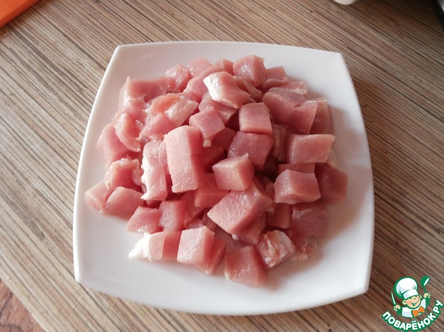 Нарезаем свинину кубиками.