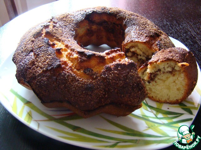 Взяла рецепт за основу. И второй раз уже попробовали без корицы, а с изюмом и грецкими орехами, с меньшим количеством сахара, ок 120 г и с добавлением ржаной муки. Сегодня делала по-другому-заменила 50 г муки измельчеными овсяными хлопьями, сахара положила еще меньше - всего 100 г., добавила немного обжареного арахиса, а в серединку вместо корицы положила банановый слой. Вместо кефира была ряженка. Оооооочень-очень вкусно вышло! Так и быть, отрезала мужу кусочек. ))) Еще раз спасибо!! (Конечно, рецепт в кк)