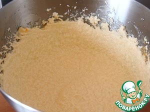 Мягкое масло взбить с сахаром и ванильным сахаром до образования светлой массы, по одному добавить яйца.