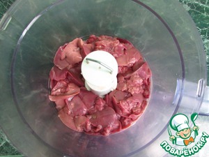 В чашу блендера положить куриную печень, промытую и освобождённую от плёнок