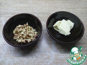 • Орехи измельчить ножом, размер, как вам нравится. Подготовить сливочное масло.