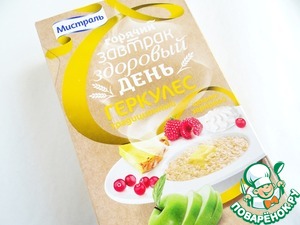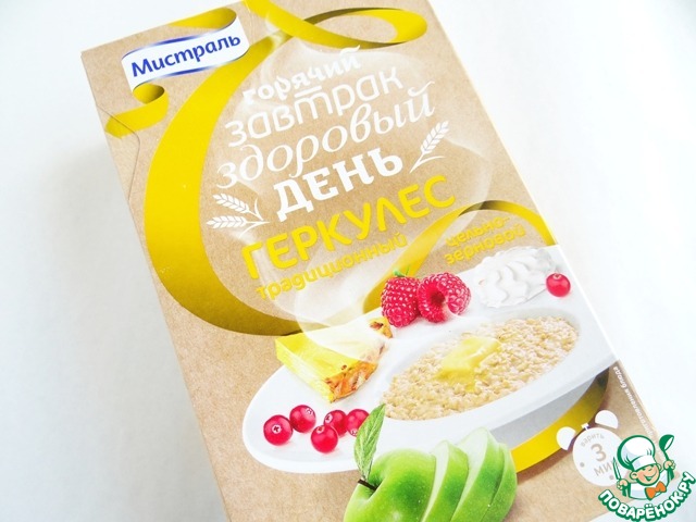 Стакан - 240 мл. Для приготовления этой запеканки я использовала геркулес традиционный цельнозерновой ТМ "Мистраль". Разогреваю духовку до 190 градусов.