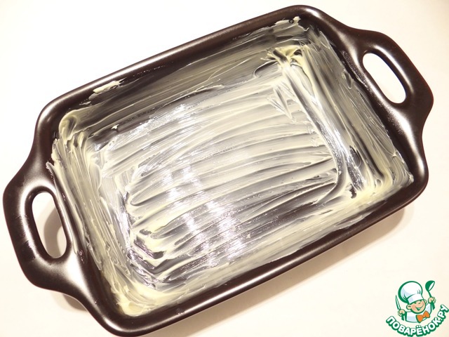 Форму смазываю одной ложкой сливочного масла (я использовала керамическую форму размером 22*16 см).