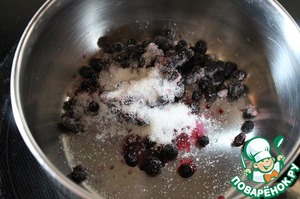 Чернику сложить в ковш, добавить оставшийся сахар и прогреть до растворения сахара.