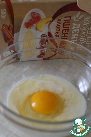 1. В чашку влить кефир, добавить яйцо, соль, перец и слегка взбить вилкой.