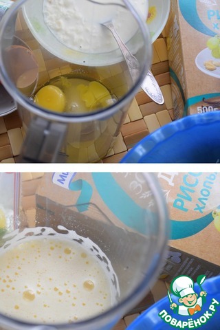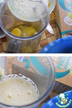 Рисовые хлопья залить молоком и убрать в сторонку на 10 мин. По желанию можно добавить ванилин.