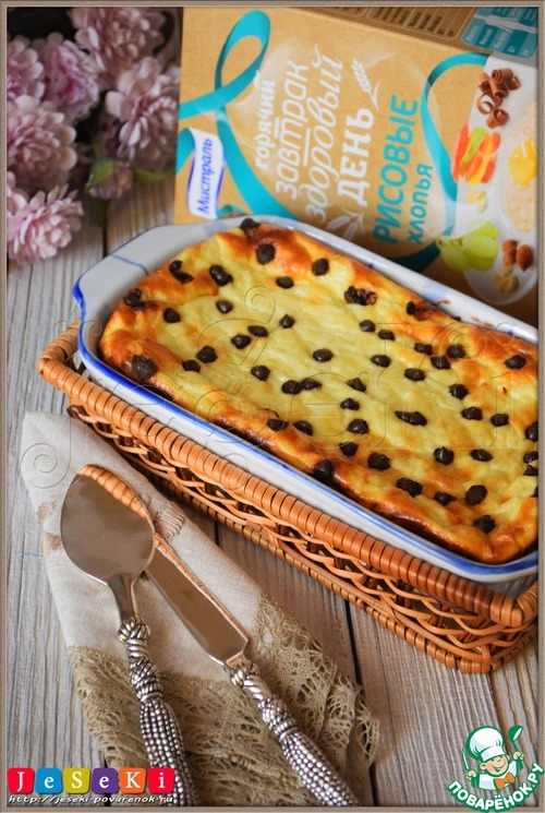 Очень нежная, в меру сладкая запеканка из рисовых хлопьев и творога.