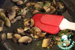 Тонкие ломтики шляпок обжарим в смеси оливкового и сливочного масел.