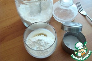 Кладём муку и соль и всё хорошо вилочкой взбиваем.