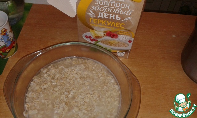 Форму смазать маслом, насыпать хлопья "Геркулес"