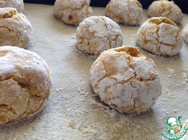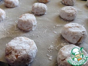 Достать тесто из холодильника. Скатать из него шарики одинакового размера и обвалять в сахарной пудре.