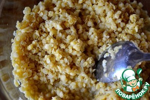 Хлопья заливаем кипятком - берем примерно 1/2 стакана, ставим для напитывания минут на 10.