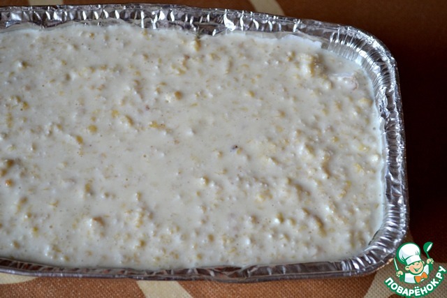Все перемешиваем и выливаем в смазанную форму. Выпекаем в духовке при 180 град. примерно 40 минут - запеканка зарумянится и сильно увеличится в объеме.
