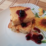 Есть у меня среди массы привязанностей одна слабость - запеканки. Обожаю. Люблю нежно и преданно. И собираю самые разнообразные рецепты, оттачивая, так сказать, мастерство в их приготовлении. Вот этот рецепт - прелесть прелестная. Простенько и без особых хлопот готовим вкуснейшую вещь. Особенно мы ее любим... переночевавшей в холодильнике. Вот прямо в форме ставлю туда остывшей и дожидаюсь часа Х. С горячим утренним кофе - наслаждение!